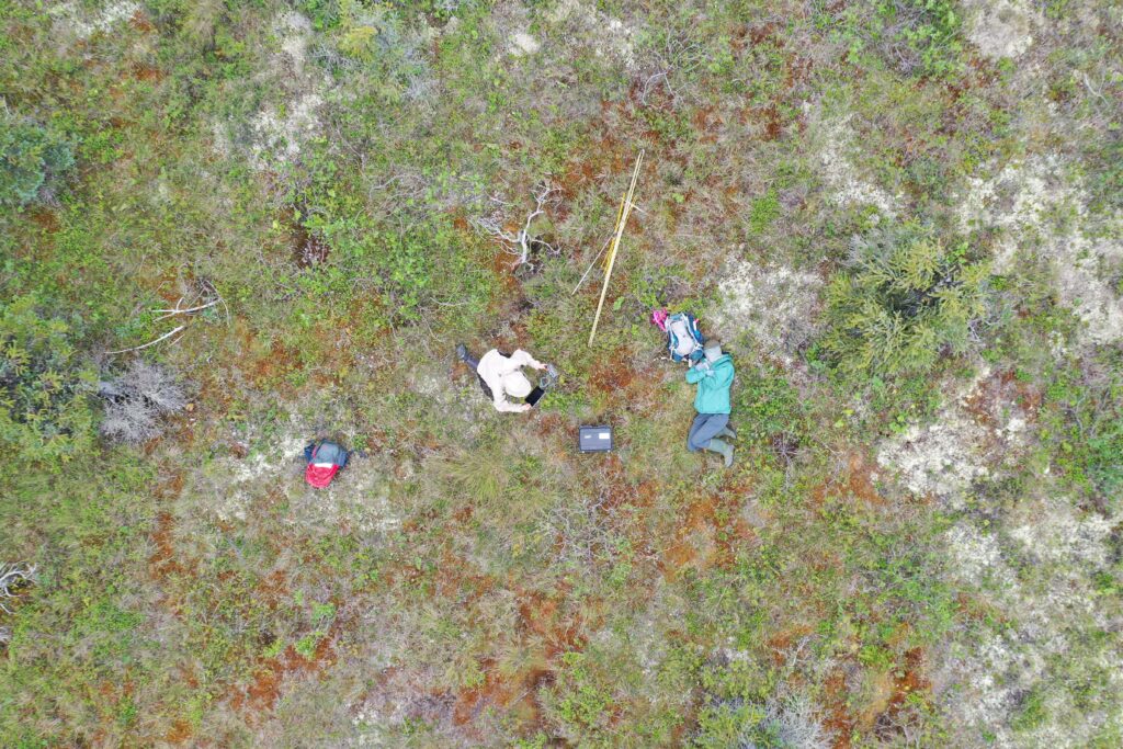 Figure 20. A birds-eye-view of field work taken from a drone approximately 30 m above the ground. Credit: Hana Travers-Smith